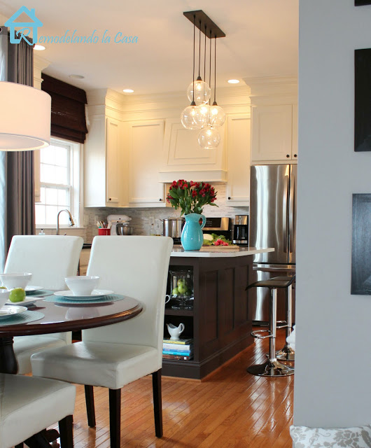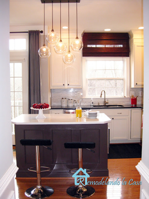 ¿Verdad que es hermoso? Cristina hizo todo: pintó los gabinetes de blanco, instaló molduras y mosaicos… en fin, ¡una transformación increíble!