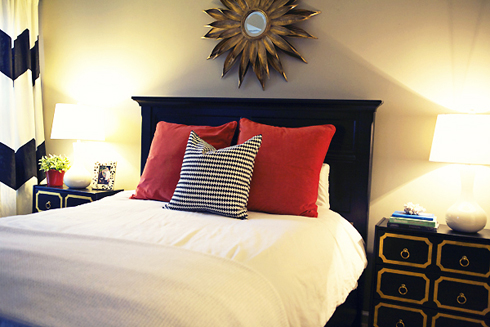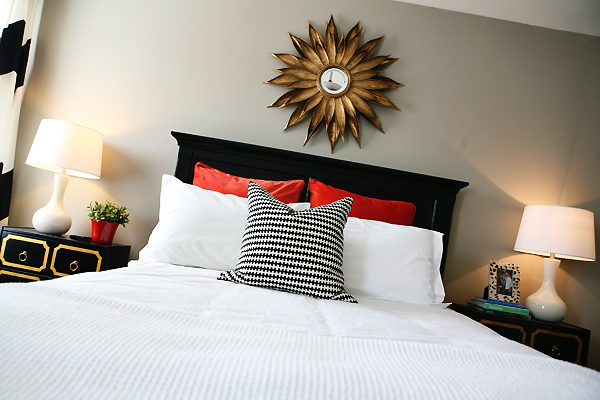 For this Interior of the Day, I found a lovely and quite fancy bedroom from blogger Anna from A New Found Treasure. I love how it looks so fresh and modern, with a winning palette of black, white and hits of red. By the way, my favorite piece is the sunburst mirror (I can go nuts for them!). Have a very happy Friday!