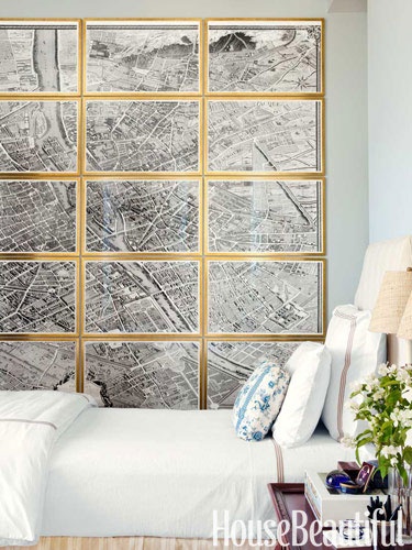 Por cierto, hablando de la última imagen, qué genial idea, la de dividir una foto grande (tipo mapa) en varias pequeñas, y conseguir así un gran impacto. Incluso pareciera una especie de ventana, aunque la vista, por supuesto, sea en blanco y negro… el marco dorado también es un lindo toque.