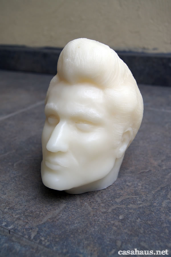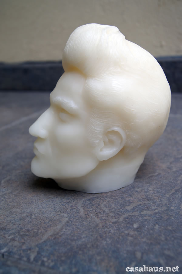 Yo sé que no hubiera comprado una vela en forma de cabeza humana (de hecho fue un pedido especial), pero ¿creerás que me gusta cómo luce en nuestra sala?
