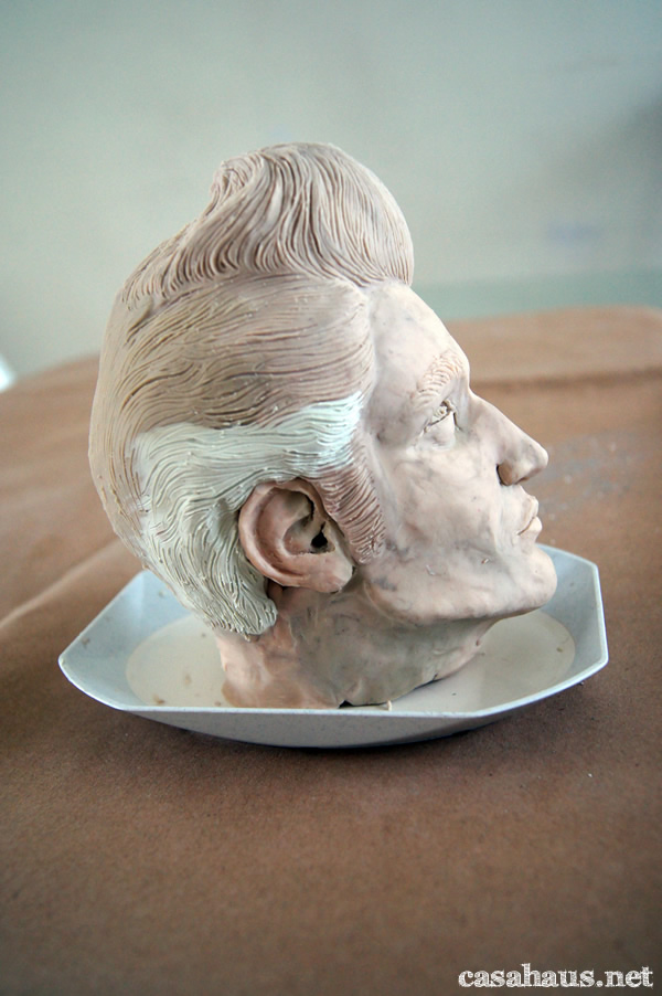 Ok, not quite. Truth is, I was hired to make a sculpture of his face. I hadn’t really thought of sharing it here, because it barely has got anything to do with decorating and design. However, after such a hard week (yesterday I stayed up until 4 a.m., yes indeed), my pal couldn’t remain unknown, so today, before delivery, I got crazy with my camera, hehe.