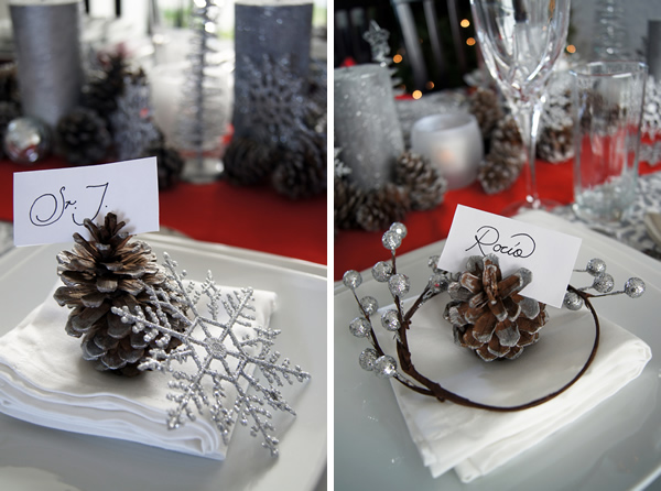 As placecards, I used a little paper and placed it on the pinecones.