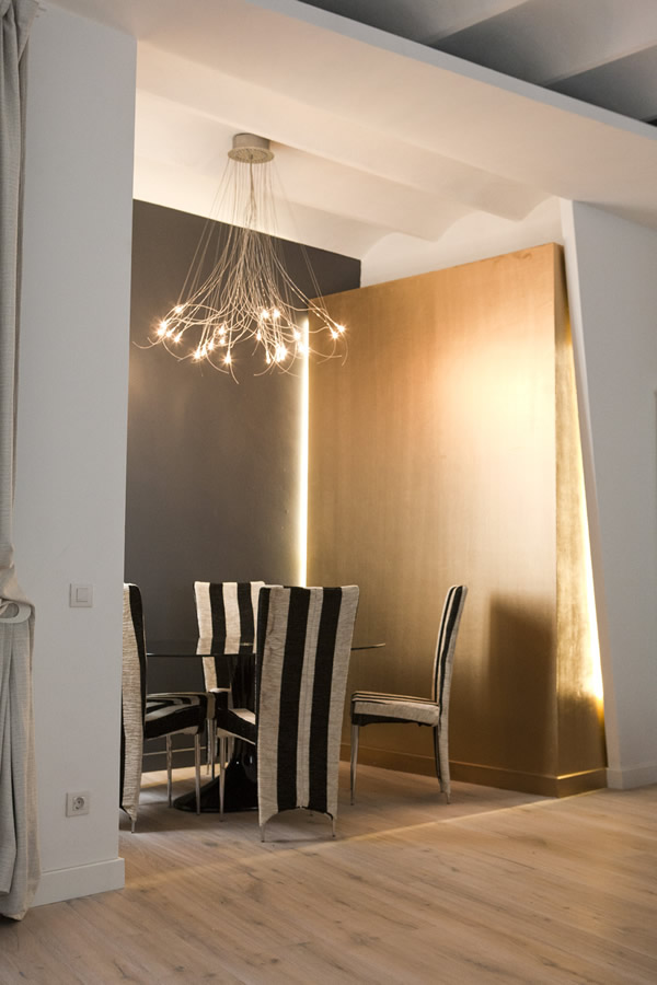Empezamos la semana con la interesente reforma integral de un piso de 100 m2, ubicado en Barcelona y llevado a cabo por el arquitecto Jorge Rangel. Para conseguir un espacio amplio y fluido, se derribaron muros y las paredes restantes se pintaron en su mayoría de un blanco muy limpio, con algunas otras en gris contrastante. Siempre me ha parecido que la combinación de blanco, negro y gris resulta moderna y fresca, y en esta casa no es la excepción, pero creo además que los detalles dorados le dan un toque de calidez increíble. Sin duda un espacio muy equilibrado, minimalista y acogedor al mismo tiempo.