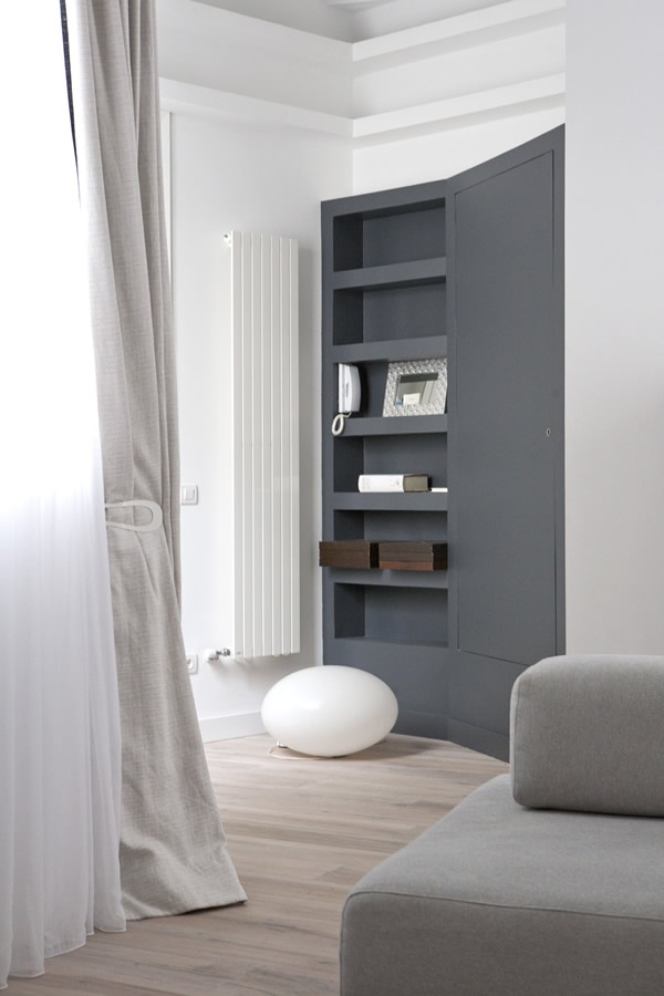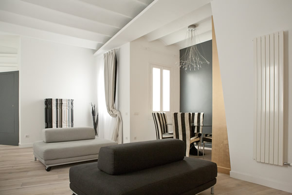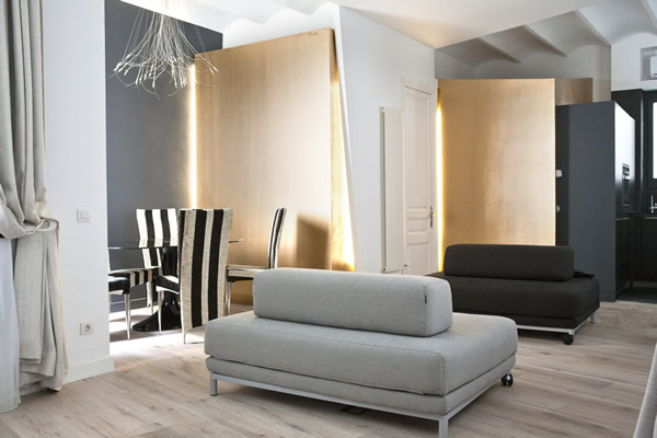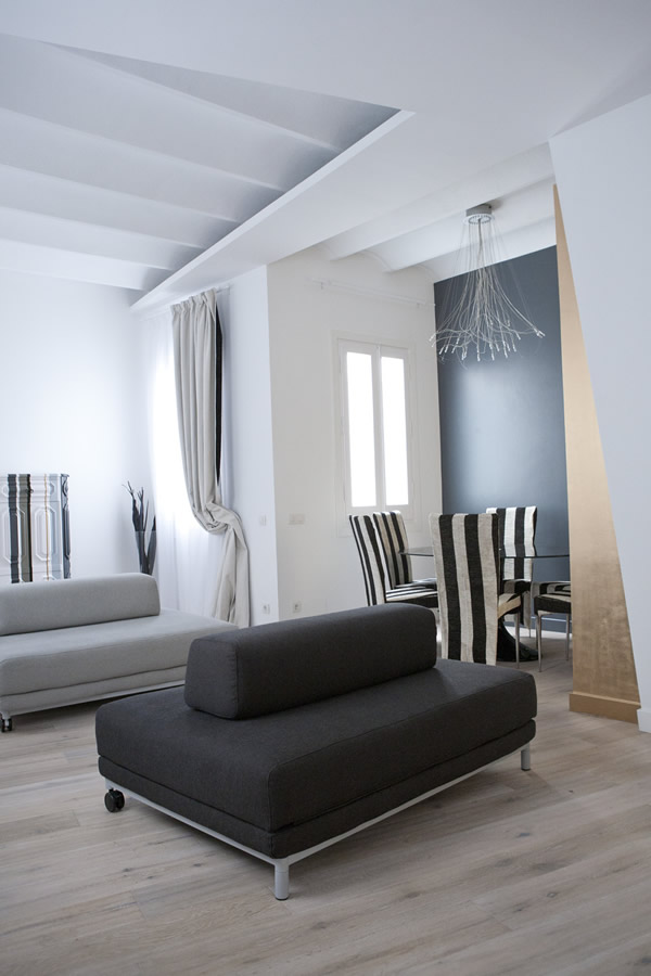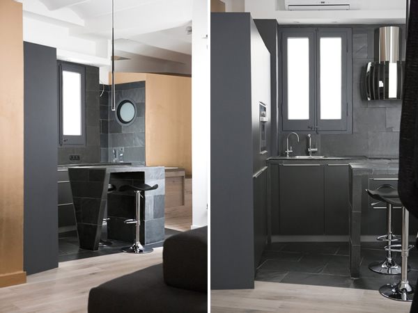 Let’s kick off the week with the very interesting transformation of a 1,000 sq ft home in Barcelona by architect Jorge Rangel. This makeover included walls being demolished in order to achieve the open space. Remaining walls were painted white, and gray. I’ve always thought the black, gray, and white combination is modern and fresh, and this is no exception. Plus, I love how the gold accents make it warm, balancing a minimalistic space.