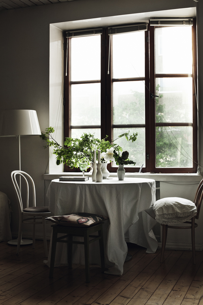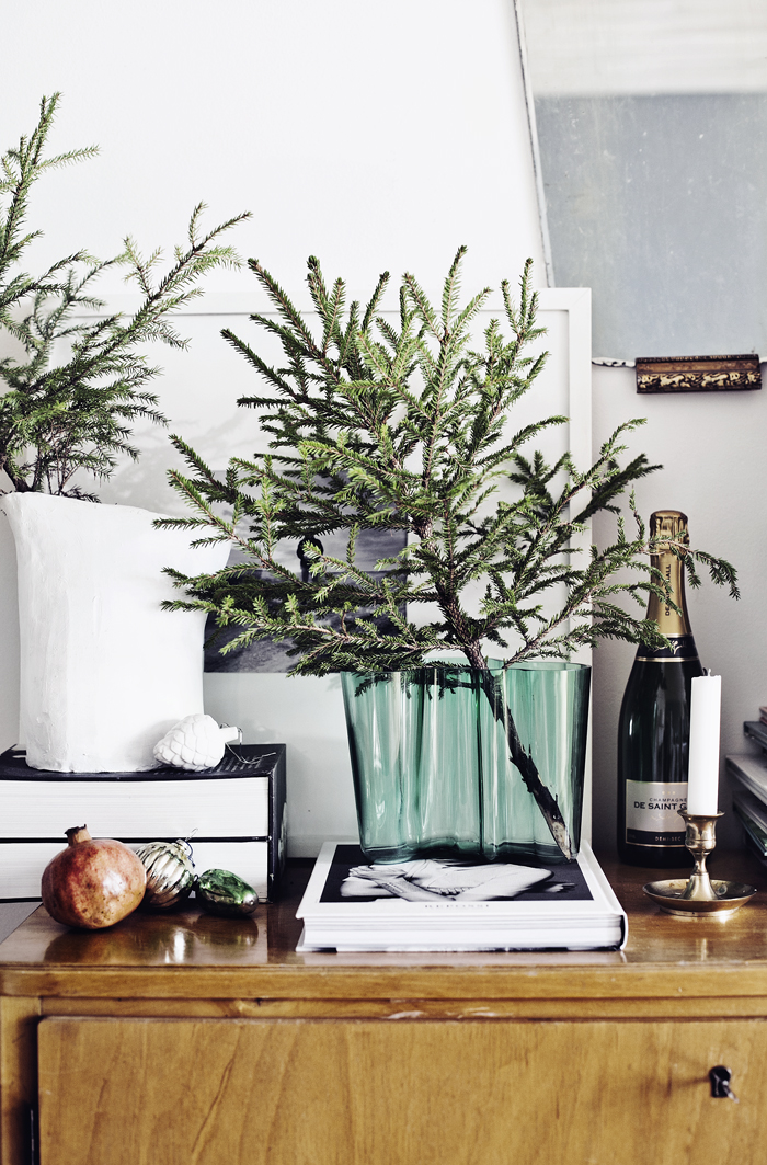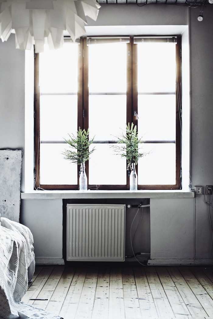 I’d like to take a break from the Christmas posts to invite you to spend some time with me in my latest discovery: a gorgeous white home, so bright and so serene. It’s got a certain Winter vibe, not only because of the green branches here and there, but also because of the cool palette: white, blue, green and wooden hues. It’s the perfect getaway to charge energy and start the crazy week ahead of us. Enjoy!