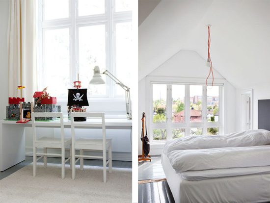 No cabe duda que la combinación de tonos neutros (blanco, gris, negro) junto a los tonos madera cada vez me gusta más. Me fascina la manera en que lucen los espacios, con chispas de color de manera muy puntual y acertada. Esta es una casa que recién se renovó por sus dueños, diseñadores industriales. Hay muchos detalles que me gustan de ella, pero quizá uno de mis favoritos son las paredes de madera, que se mantuvieron a pesar de la renovación. En una decoración neutra, como ésta, la textura que brindan las tablas de madera -aún pintadas de gris- es clave.