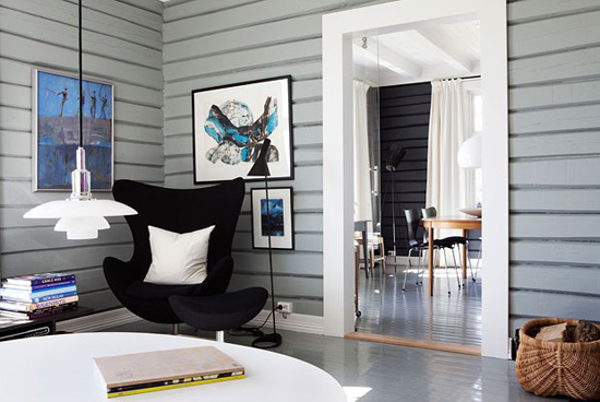 To me, it’s a magical combination: gray, white, black along with wooden tones. And it works beautifully with modern pieces of furniture. This house was renovated by it’s new owners, a couple of industrial designers. I love so many features about it, but perhaps one of my favorite ones are the wood planks on the walls -especially the ones painted gray. They make the perfect texture for this neutral space, don’t you think?