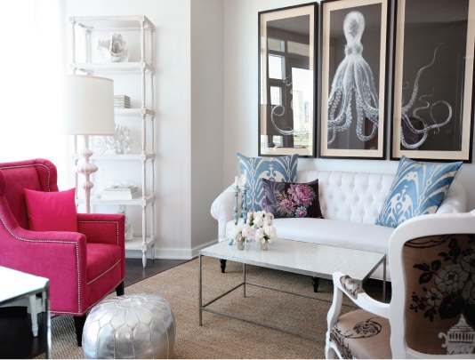 A place full of color and contrast, where classic furniture is mixed with modern details and tones… no wonder The Cross Design won Stylemaker of the Year from Canadian House and Home with this design! I love how color gives each room a different feel, eventhough they all work perfectly together. I love the accesories, especially the pillows and the octopus wall art, as well as the lovely blue. My favorite rooms? The bedroom and the office. I couldn’t ask for anything more. 🙂