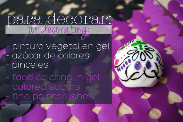 Making the sugar skulls is easy, but just in case, here’s a step by step video for you. Hope you like it 😉 (Those of you who read my posts in your mail, click here).