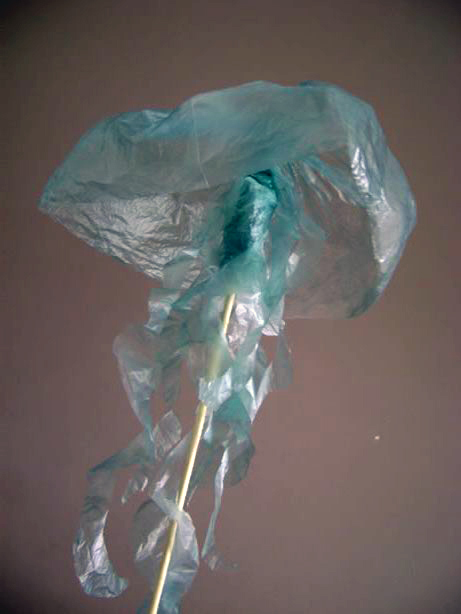 Estas medusas son increíblemente fáciles de hacer, y los resultados quedan hermosos. Al subir y bajar el palito de madera, la medusa se mueve justo como se mueven las medusas reales, así que queda perfecta. Tanto así que después de su exposición, mi hija quiso tenerlas en su cuarto como decoración. Por cierto, a las maestras les fascina, porque son una manera muy creativa de reutilizar materiales comunes, como la bolsa de plástico.
