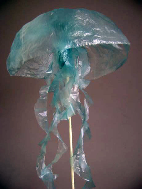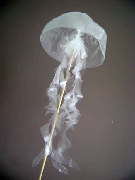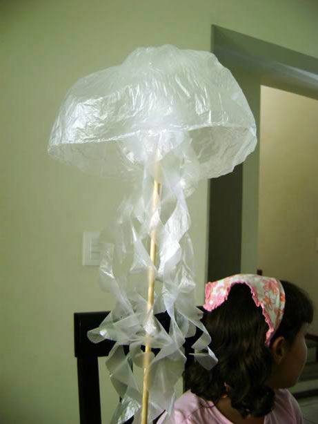 La semana pasada mi hija tuvo que dar una clase en la escuela sobre las medusas de mar. Podía preparar una cartulina con información, o una maqueta con figuras de plastilina, pero no. Ella tenía otros planes. Usando material que ya teníamos en la casa, tuvo la maravillosa idea de hacer una medusa. ¡Los resultados fueron muy hermosos!