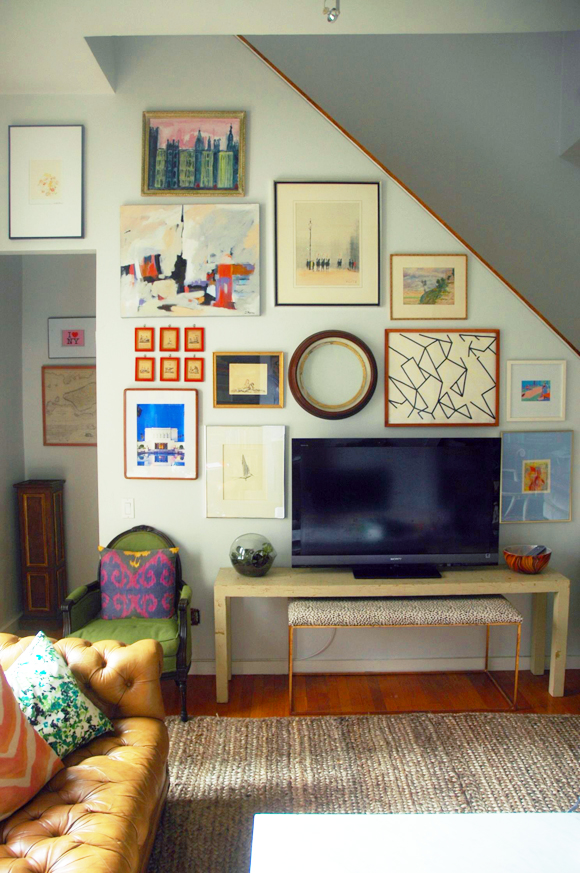 ¡Me encantan!!! ¿Viste que incluso en esta última literalmente enmarcaron la tv? Me fascina que es algo completamente personalizable: puedes hacerlo tan “limpio” o “lleno” visualmente como quieras, colgando pocos o muchos cuadros, mezclando el estilo de los marcos o usando un sólo tipo o color… en fin. Mis favoritos son aquellos en donde la pared se pinta de un color intenso (como en esta última foto), o en los que la pared es blanca y entonces se acompaña de cuadros blancos, con marcos blancos, es como si a pesar de tantos cuadros se logra darle aire al espacio, y no se ve tan recargado. A ti, ¿qué te parecen?