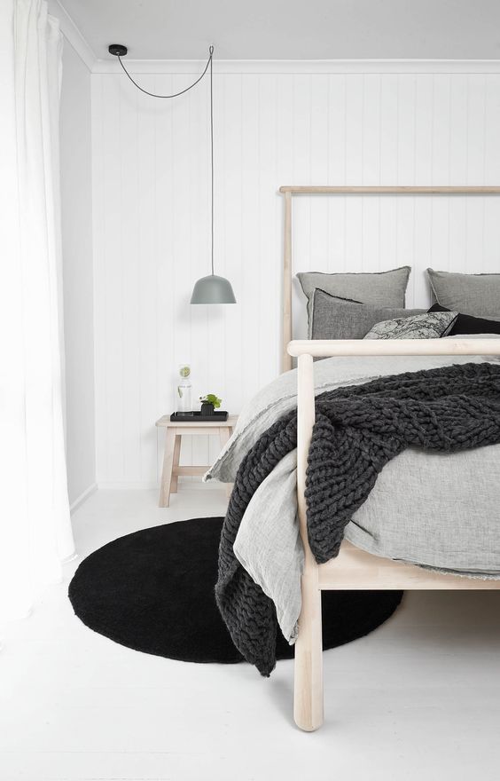 As we know, beds are the stars of bedrooms, so in Scandi it’s best to go with a neutral base: whites, greys, and blacks give the Nordic inspired starting point.