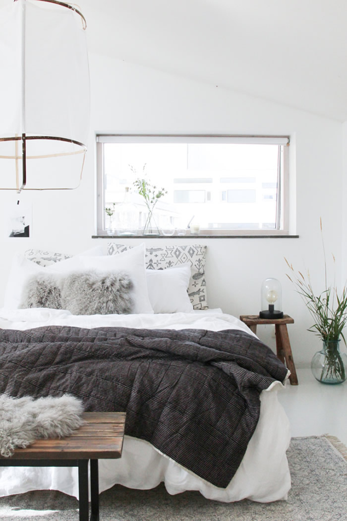 Vestir la cama con muchas capas es súper importante si queremos que se vea como de revista (como les había contado en este post), pero en el estilo Scandi éste es un punto clave. Desde las sábanas, hasta los duvets, sin olvidar colchas, mantas, cobertores, y por supuesto, los cojines, ésta es una manera de darle calidez (literalmente) además de mucha personalidad y textura para compensar la paleta de colores neutra sin caer en lo simple. Para mí, ésta es la diferencia principal entre las recámaras Scandi y las del típico estilo escandinavo, en el cual las camas tienden a ser bastante sencillas.