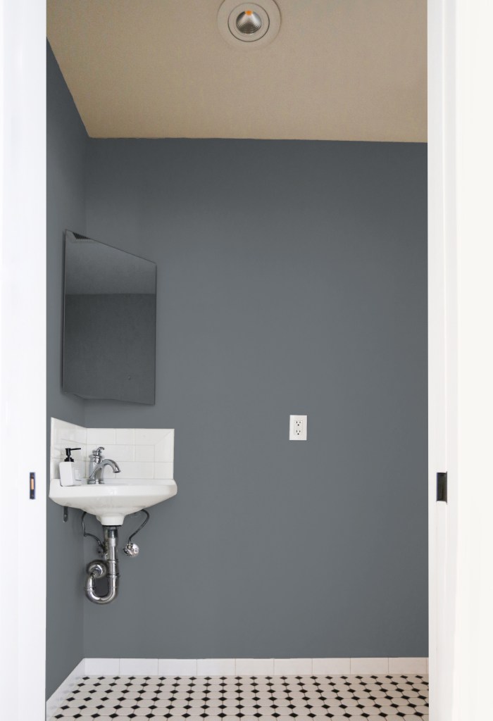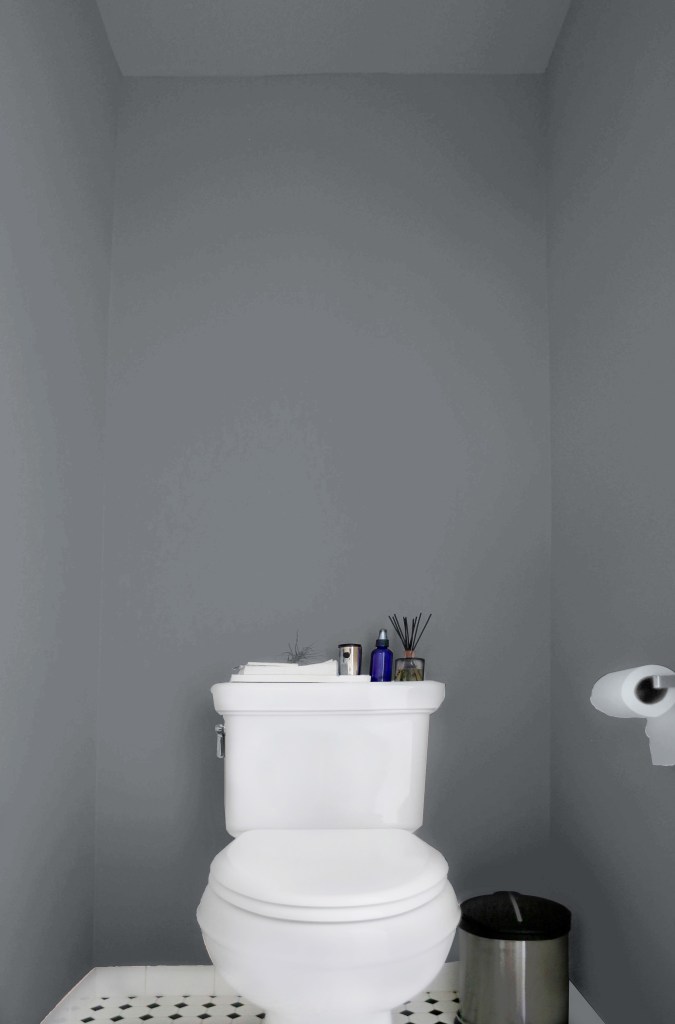 Increíble lo que pueden hacer pintura y accesorios, ¿verdad? Cierto que el piso se cambió, y se puso el mueble debajo del lavamanos… Pero aquí entre nos, podría haberse dejado el piso anterior y sin mueble, y el cambio habría sido igualmente sorprendente. Y lo mejor con la pintura es que si te cansa, o te equivocaste, puedes volver a pintar y ¡no pasa nada! Esas plantitas colgadas en la pared, los cuadros y esa lámpara son preciosos. Y en frente, sobre el W.C., unas repisas permiten poner más accesorios y color 😉