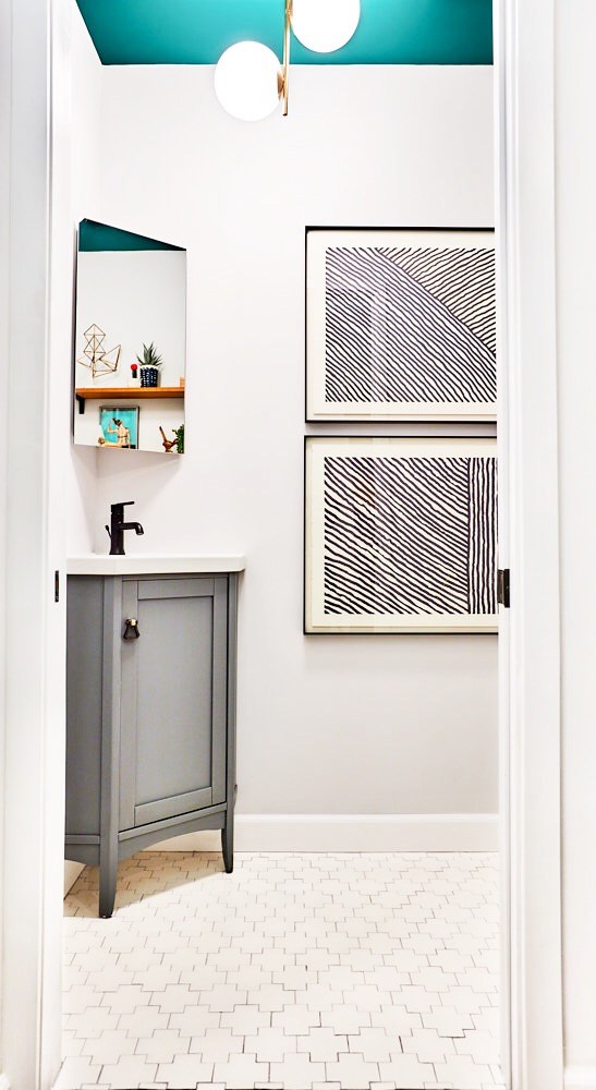 ¿Pueden creerlo? ¡Qué belleza!!!!!! Se ve súper fresco y contemporáneo, y ese toque turquesa en el techo es literalmente sorprendente. ¡Me encanta (es uno de mis colores favoritos)!!!!