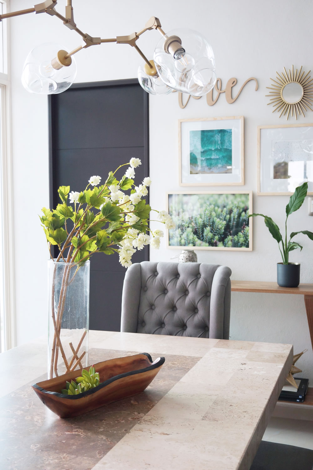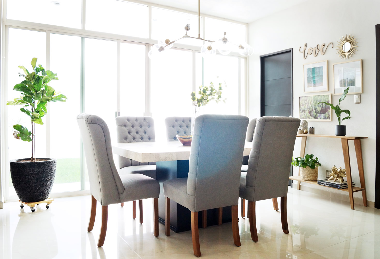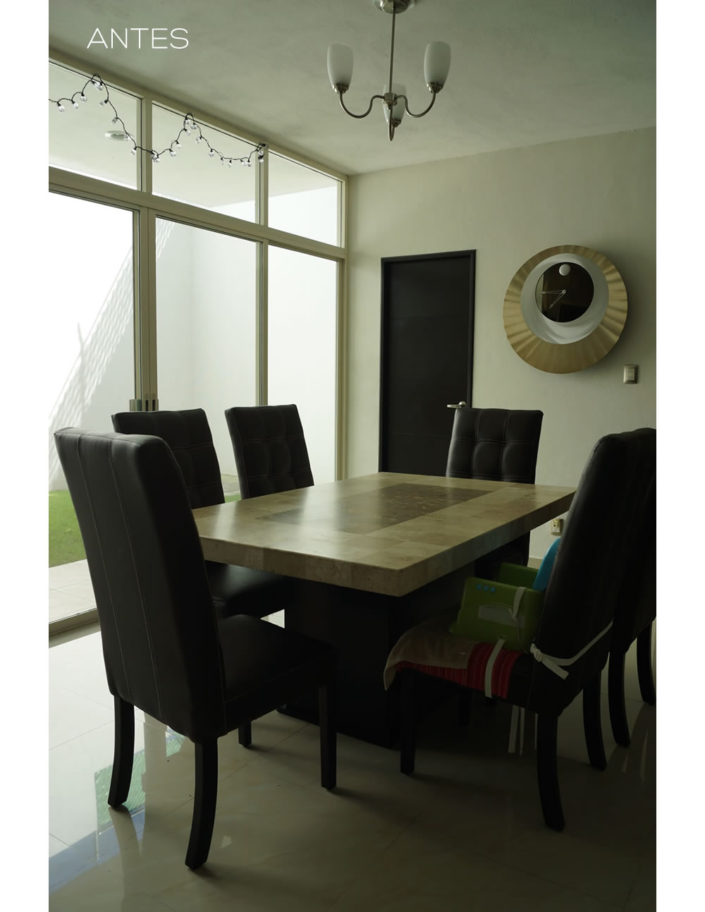 ¡Hola! ¿Cómo están? Sé que he estado desaparecida de estos rumbos, ¡y no saben cuánto lo siento! Pero es que, entre los arreglos que estamos haciendo a nuestra nueva casa (no, todavía no nos cambiamos, ¿pueden creerlo?), los proyectos con clientes, que este año se han venido duro y tupido (afortunadamente), más dos que tres otros proyectos que se están cocinando… la verdad es que me ha costado muchísimo organizarme para poder tener tiempo de bloguear. Sin embargo, he tratado de compensar, publicando al menos en Instagram, donde tanto en mi feed como en las Stories les he estado compartiendo mis andanzas en todas estas aventuras… ¿las han visto? Si es así, quizá les haya tocado ver esta foto de arriba, de mi último proyecto de decoración: la renovación de un comedor contemporáneo. Bueno, pues hoy estoy súper emocionada y feliz no sólo de estar de vuelta, sino de hacerlo precisamente con un post muy especial en donde en donde les mostraré cómo logramos transformar completamente este comedor, de un espacio un tanto aburrido y sin chiste, a esta belleza que sorprende desde el primer momento que entras a la casa. ¿Empezamos? 😀