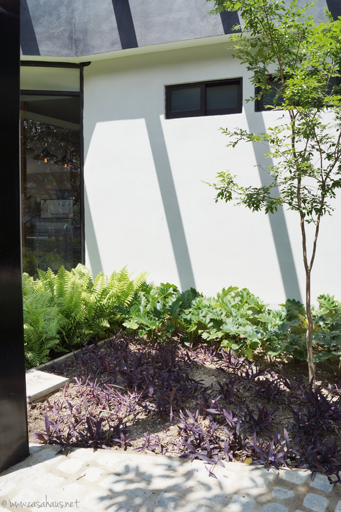 Otra toma difícil por el sol, pero también me gustó este rincón con el contraste de colores en las plantas. Me encanta que todos los acentos sean en tonos morados (es mi color favorito desde pequeña y ¡me fascina en las flores!).