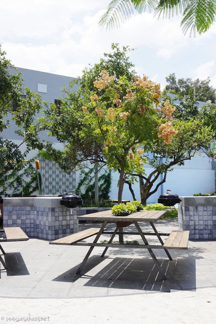 The barbecue area with more cement tiles… I can’t get enough of them! I love the different grey tones used here.
