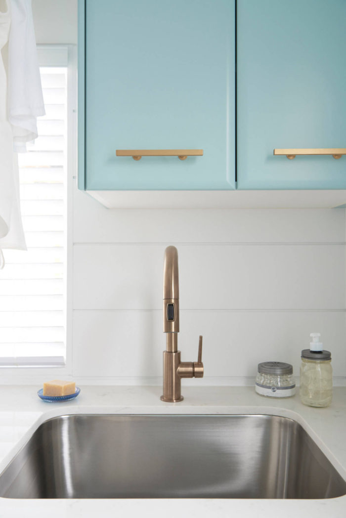 The good thing about laundry rooms, I think, is that they are somewhat like bathrooms: they are rather small rooms, so they aren’t as overwhelming as others, in the sense that they can be transformed with few but very precise details. Of course, having a bright, white space to start with doesn’t hurt, but it’s details like the blue cabinets and accessories that take it to another level. To see more of the space and get Cynthia’s tips on how to create your ideal laundry room, visit this note on House and Home.