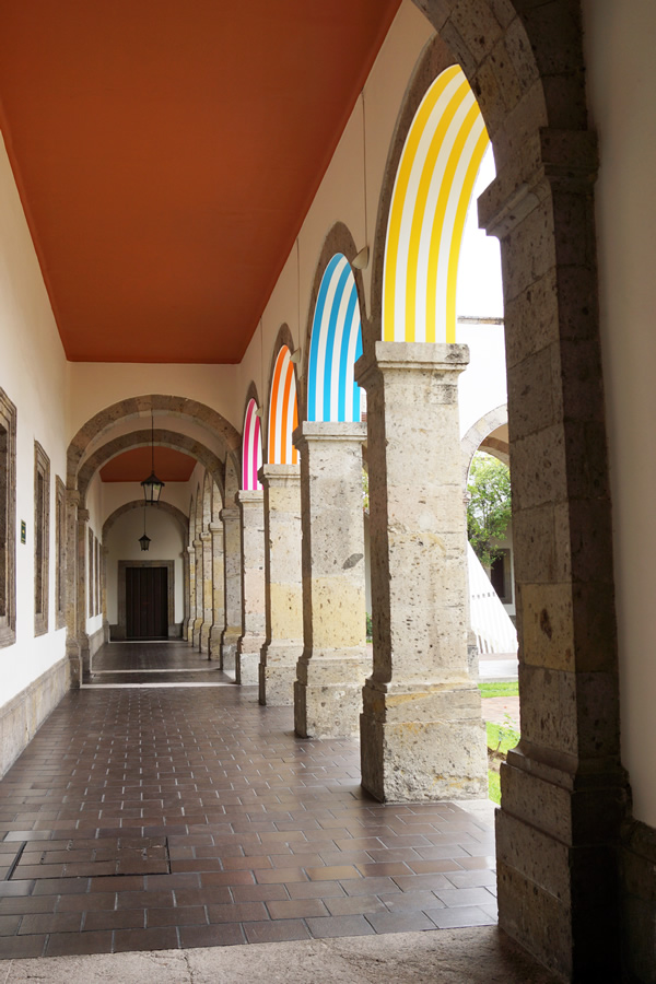 A little before I came to Buenos Aires, I visited the exhibition: “From One Patio to The Other: Labyrinths”, by French artist Daniel Buren. Rather than being a traditional art exhibit, you should think of it as an intervention the artist made to the patios at the Instituto Cultural Cabañas, playing with color, mirrors, and lines. It’s amazing to see a majestic architectural site such as the Cabañas, intervened this way, because you can experience the same space you already knew, in a different manner. I especially loved the use of mirrors, for I love how they can disappear and become invisible. As usual, I carried my camera, and although the day was a little bit cloudy, I still have many photos to share. Enjoy!