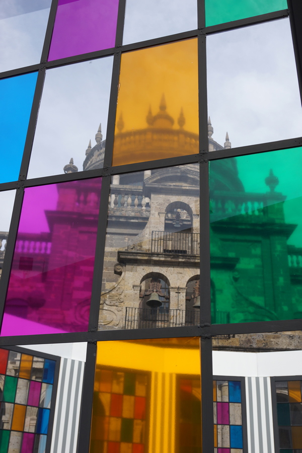 Poco antes de venirme a Buenos Aires fui a visitar la exposición “De un patio a otro: Laberintos” del francés Daniel Buren. Quienes esperen una exposición como tal, más bien piensen que se trata de una intervención que el artista hizo en los patios del Instituto Cultural Cabañas, utilizando juegos de color, espejos y líneas. Es increíble ver una obra arquitectónica de la magnitud del Cabañas, intervenida de esta manera, pues experimentas el mismo espacio que ya conoces, de una manera distinta. En lo particular, me encantó el uso de los espejos, pues me sigue maravillando cómo un elemento real y tangible, puede hacerse “invisible” y mimetizarse del tal forma con el espacio. Como siempre en estas ocasiones llevaba cámara en mano, y, aunque el día estaba un poco nublado, tengo muchas fotos por compartir. Espero las disfruten. 🙂