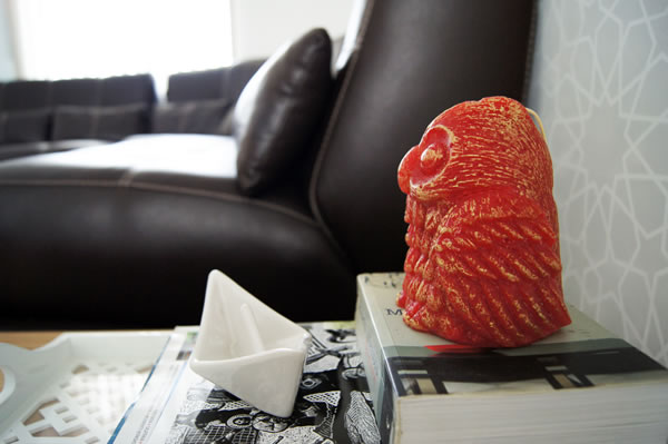 My very first candle! (not considering the special case of the famous vampire I designed earlier this year). I love the golden touches they gave it at the candle factory. And then of course, it’s so interesting to see how the design transforms from an idea to something tangible. I love how it looks sitting in our living room, especially with the huge owl trend. 🙂 I hope it’s the first one of many more to come!
