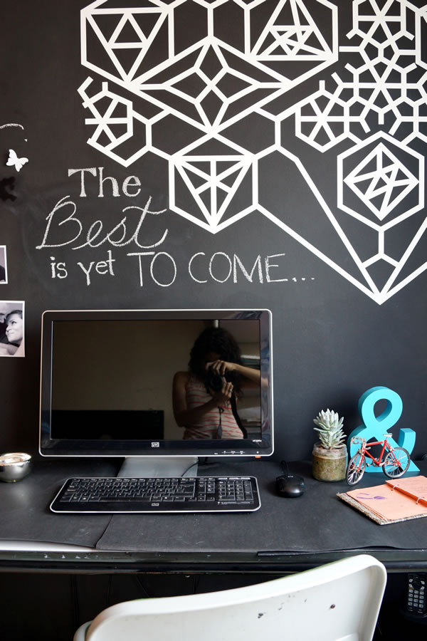 And that’s how we managed to have our beautiful black chalkboard wall. It wasn’t easy, but it was totally worth it. I love how it looks with the geometric decal.
