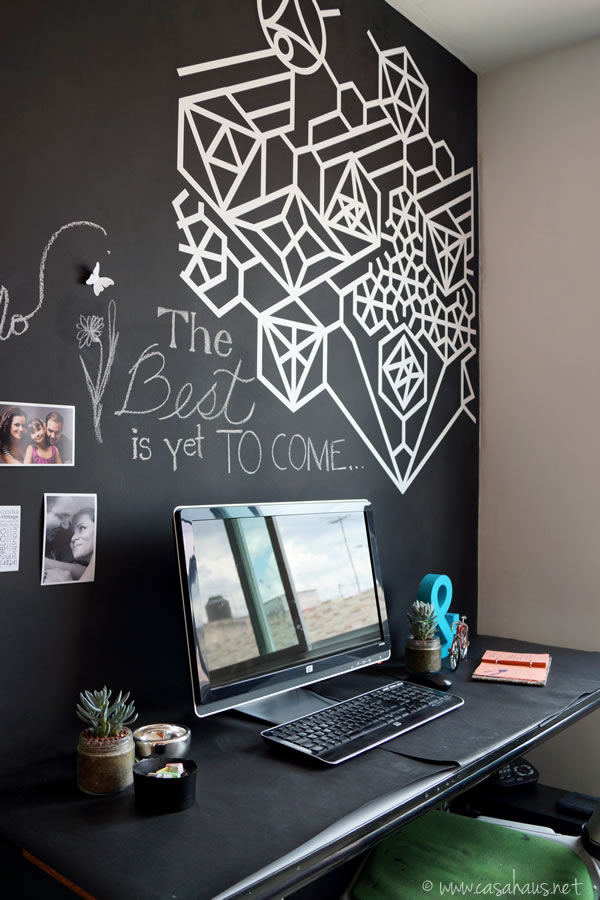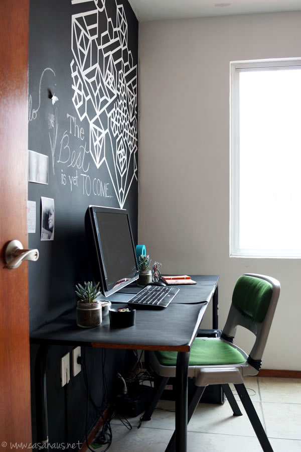 5. I have not tried chalkboard paint yet but I’ve heard that it can be a little more difficult to work with than regular paint. Your office is looking great!