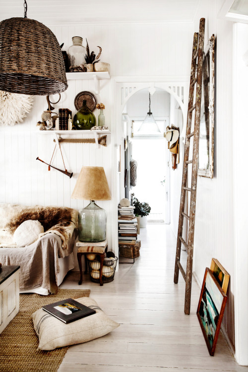 Summer days get me thinking about the countryside, landscapes, and pleasant days enjoying the outdoors… that’s why today I’m sharing a very lovely home with a very country-like atmosphere, filled with light, white and brown tones. You know I love white, especially when mixed with gray or black, but I must say white looks amazing paired with the brown, earth-like tones and natural textures, and even more welcoming. This is the home of stylist and photographer Kara Rosenlund, who spends a great amount of time travelling on the road, taking photos and giving workshops (wish I could attend one!). Her love of nature and the Australian countryside can be seen and felt through her spaces and lifestyle. The perfect home for the perfect weekend that has finally arrived. Enjoy! 🙂