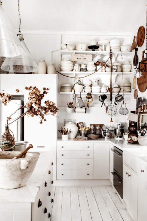 Although I do like having my own kitchen more organized (or at least try to), like in the photo above, truth is I LOVE how stylists manage to make clutter and mess something beautiful, like below. That definitely makes the space look alive and in use, and is something only masters can achieve. If I tried to, my kitchen would just look plain messy, in an ugly way!