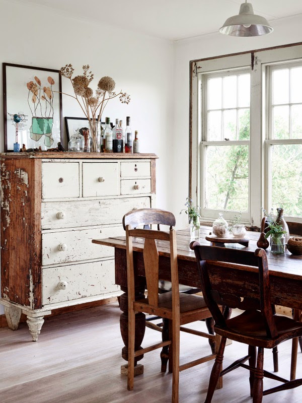 ¿Verdad que es una belleza? Adoro su estilo rústico vintage tan exquisito, en donde las piezas brillan por su personalidad y encanto. Y la distribución abierta de la cocina, sala y comedor, es ideal para vivir el espacio en todo su esplendor… Así con todo, es curioso saber que lo que su dueña más ama de la casa, no es todo lo que han hecho con el interior. “Para mí, se trata de lo que puedo ver a través de las ventanas – espacio, el clima, la luz, las aves, una granja bellamente cuidada, una comunidad, y los árboles”.