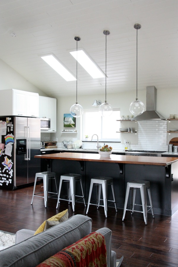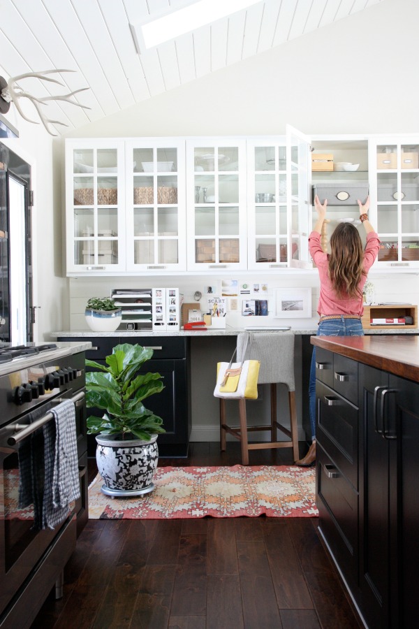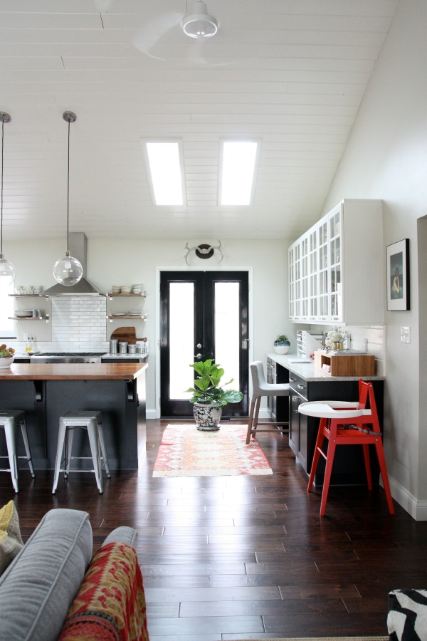 So today, a house that has me drooling. With high vaulted ceilings (which weren’t like that before), white walls (or sometimes black), light flooding in, an amazing style, and even an office nook in the kitchen, it’s a gem.