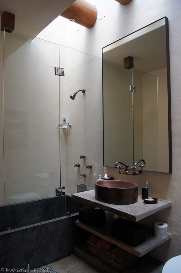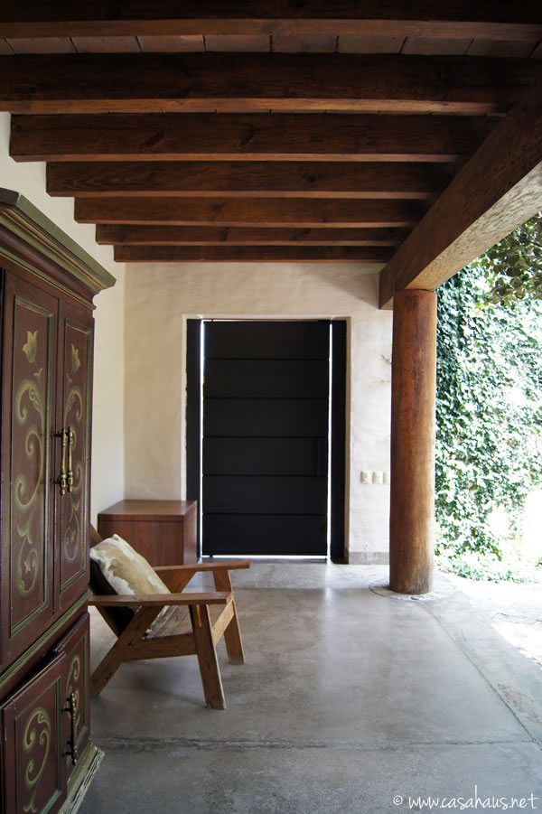 Designed by Mexican Karen Collignon, this house has a very interesting and deeply appealing mix: it’s rustic, but contemporary, with a Mexican style, but with vintage and even asian touches. The house is actually on the small size, but has a lovely patio which gives the open feel to it. I love the its architecture, the ranch-like details that make me go crazy, such as the beams on the high ceilings, the very square spaces, the simplicity of the materials, the patio. There are several reclaimed pieces and elements, as well as very original ideas, such as the kitchen lower “cabinets, made from stone (the same as the bathroom furniture). And then there’s the mix of textures… This is definitely a space that makes you feel right at home.