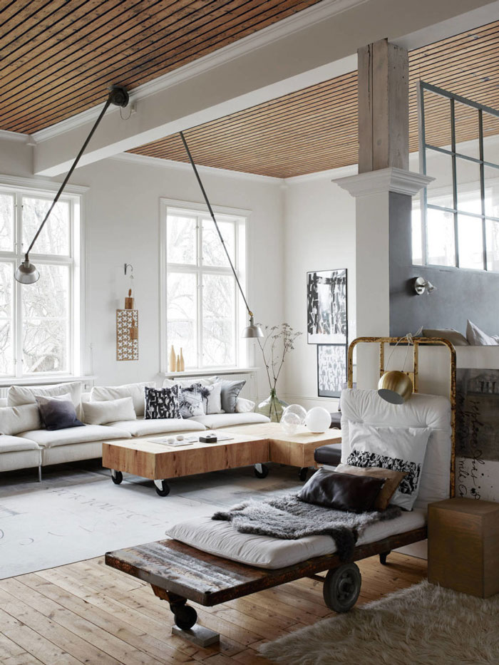 Ylva Skarp is know for her beautiful calligraphy posters, but have you seen her house? This artist has such a gorgeous home! Nordic and with a monochromatic palette, I love the warm tones from the wood, and how cozy it looks. Lots of artwork and accesories by the artist herself, plus rustic and industrial pieces make it just perfect. Enjoy it!