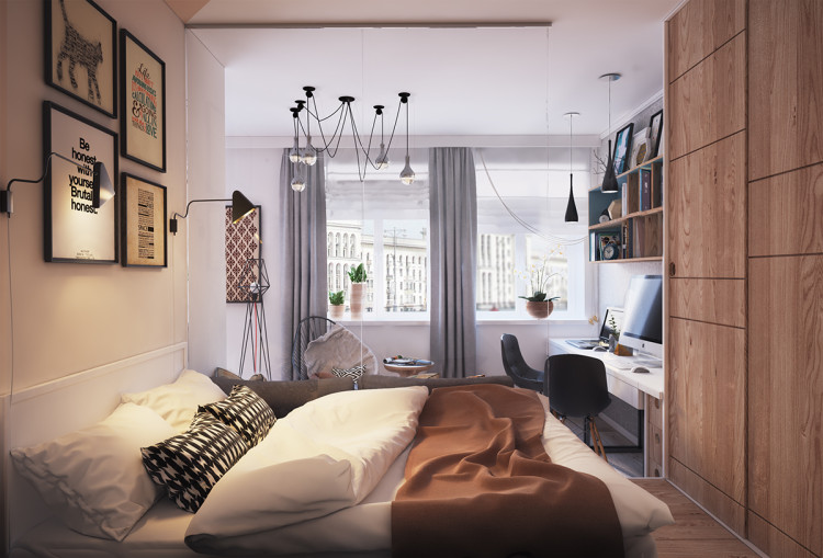 ¿A poco no es hermoso? Todo lo que una persona puede necesitar en un sólo espacio. Cada rincón es perfecto y en armonía con los demás… Adoro su estilo moderno con tinte escandinavo, con mucha madera, blanco, negro y gris, y todos los accesorios y detalles (como los mosaicos en la cocina y el baño). ¿Puedes creer que se trata de un render nada más?