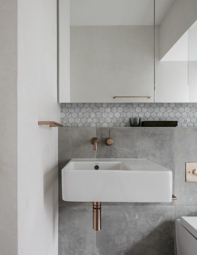 Éste en particular es mi favorito, en gris y blanco con grifería cobre. ¡Si tan sólo aquí en México encontráramos esas opciones para las llaves (y por supuesto, si tan sólo el agua de aquí no las lastimara tanto)!