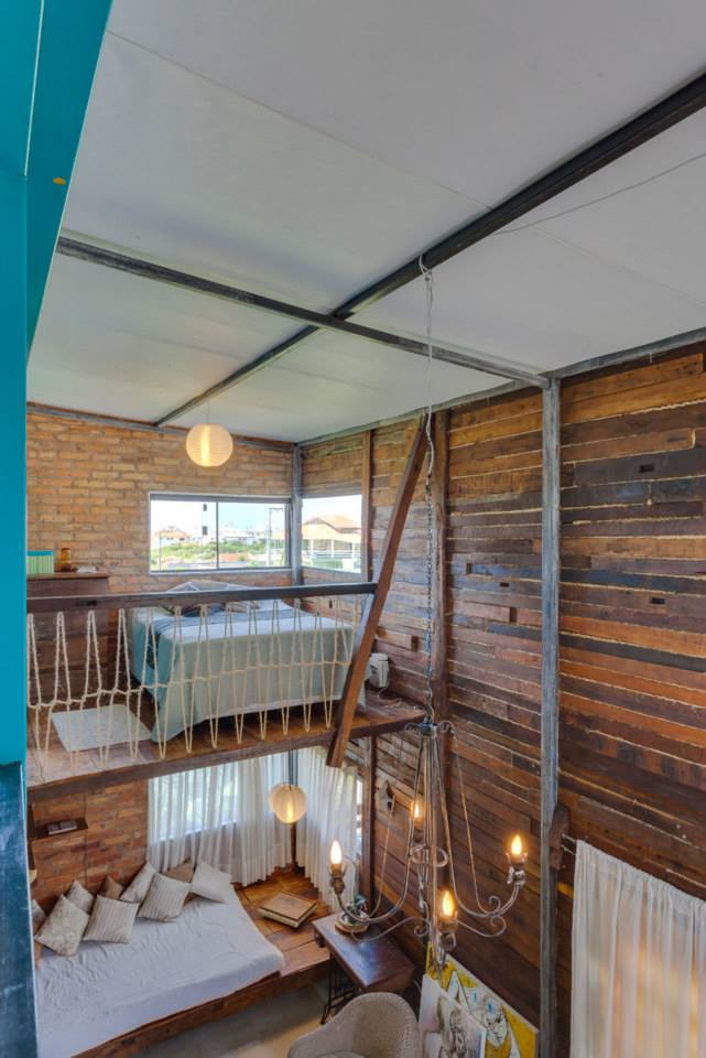 Qué linda, ¿verdad? Me fascinan el ladrillo y las instalaciones expuestas, la doble altura en la sala, el cuarto del niño y el contenedor, con ese tono turquesa tan alegre. Por cierto, el espacio de ese contenedor está dedicado a la oficina de la propietaria… increíble pensar que todo el espacio tiene sólo 60m2, ¿no? Una prueba más de que los espacios pequeños pueden ser muy bonitos, y no sólo eso, además ecosustentables. 😀