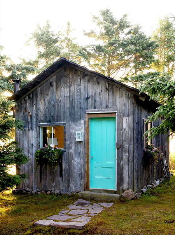 Ésta es la historia de una pequeñísima cabaña, y una fotógrafa quien, con la ayuda de su familia, se apuntó a transformarla y convertirla en un oasis de inspiración para su mamá, quien gusta mucho de la pintura. Brocha en mano, Stacey aprovechó muchas piezas recuperadas de su familia y amigos (como la hermosa puerta turquesa, que era de sus abuelos), así como elementos de la naturaleza (como las ramas usadas para colgar las cortinas). Lo que antes era un lugar oscuro y sin chiste se convirtió en un estudio blanco, lleno de luz y de color, ideal para dejar volar la creatividad.