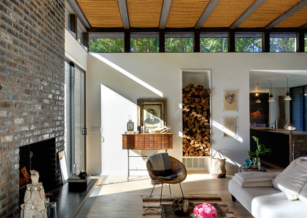 I love the rustic meets vintage meets industrial style, full of personal objects and materials. And then of course, the great use of raw materials: wood throughout the house, brick, and the rope in the ceilings.