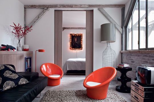 6. Me gusta muchísimo ese estilo de arquitectura recuperada, aunque las paredes con ladrillo desnudo las tenemos en casa hechas desde cero. Lo que no me convence son los sillones naranja, pero es un detallín! jaa!