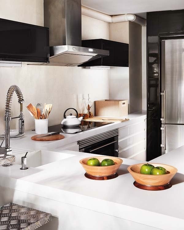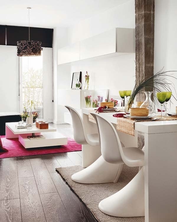 Después del puentecito y para darle la buena cara a la semana, ¿qué te parece este lindo departamento en Madrid? Diseñado por Charlie Díaz, me parece el ejemplo perfecto de cómo se le puede dar una buena dosis de color a un hogar a través de detalles sencillos: cojines, tapetes, mantas, fotografías, plantas… ¿Cómo lo logró? Partiendo de una decoración muy neutra, con paredes y muebles en blanco y tonos madera por un lado, y el piso en un tono oscuro, por el otro. De esta manera, el rosa se puede sustituir fácilmente por otro color… ¿te la imaginas en rojo y verde para Navidad?