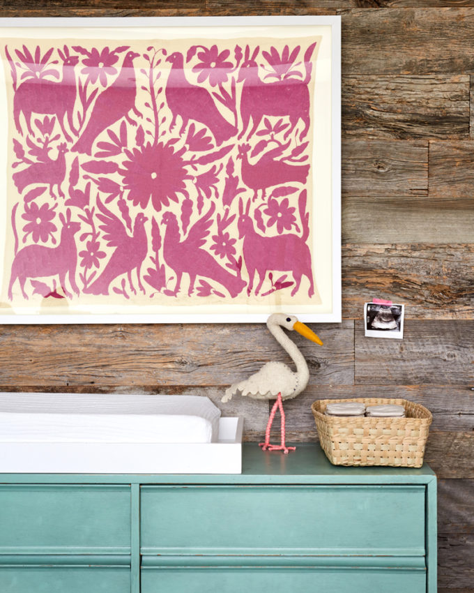 Cambiador con un cuadro otomí en el cuarto del bebé