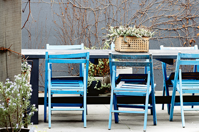 Patio moderno con sillas azules | Casa Haus