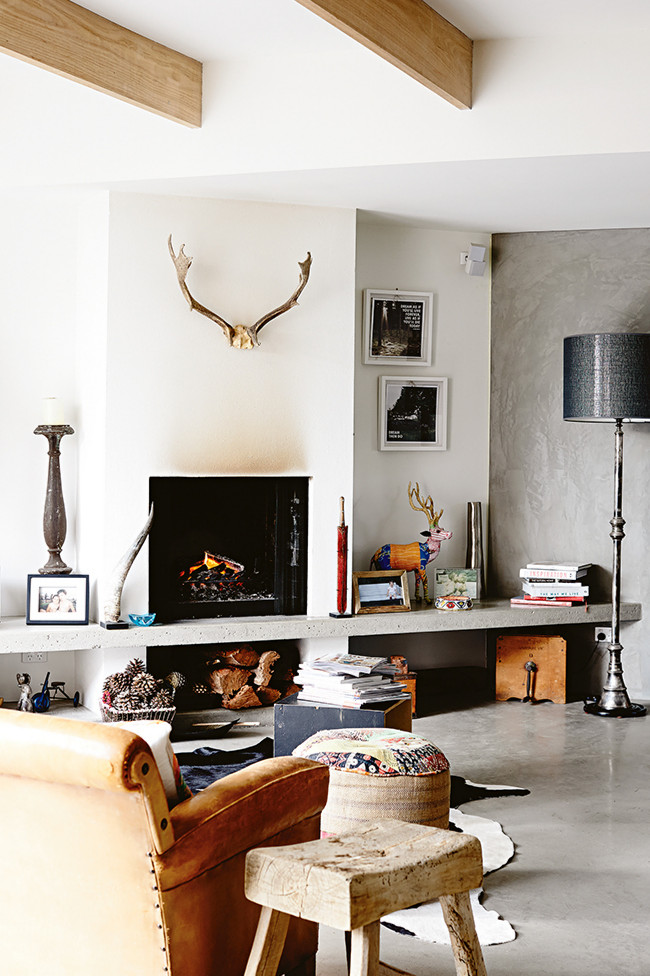 This house has something that leaves me speechless… I could easily spend hours and hours watching the photos, especially the kitchen and the fireplace in the living room. I love the dark gray and black in the kitchen, and how the tiles add that touch of glamour and elegance, which is perfectly balanced with the concrete countertop. And then, the mirror backsplash, so gorgeous! Then, on the other side, there’s the living room, with the huge white wall, reflecting all the light and making a nice and subtle contrast to the gray floor and wall. Once again, concrete is used in the shelf, giving a very urban yet rustic feel, which I adore. What’s your favorite room?
