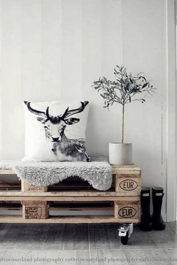 I’ve got the perfect diy project for the upcoming weekend: a pallet bench! Just stack two of them (the smaller ones, or you can cut a regular size one by half), put some wheels for added functionality, accesorize, and it’s done! Such a beautiful, and simple idea, right? Genius!