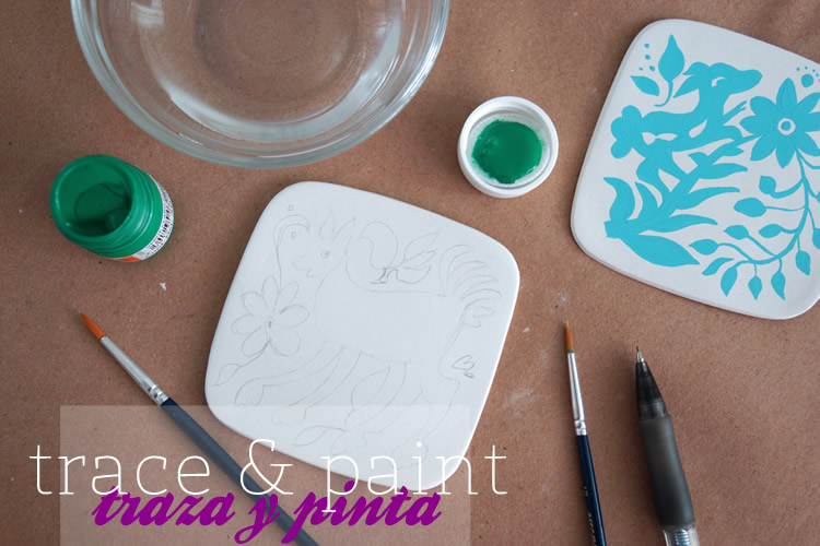 Ahora la parte divertida: trazar y pintar. Yo marqué los dibujos muy suavemente con un lapicero, y luego los pinté con colores alegres y vivos.