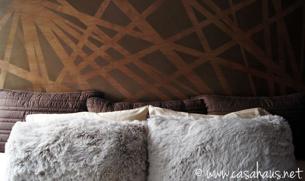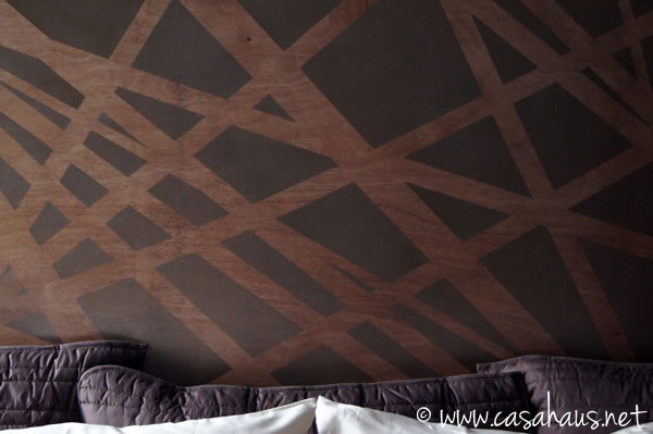 The stained wood gets a richer tone, and combined with the copper spray paint from Rustoleum (which I love), the result is a modern and quite spectacular headboard (for a fraction of the price you’d pay at stores). Then of course, you can play around with the stain tones and spray paint colors, choosing your favorite combination (I want to try with white).