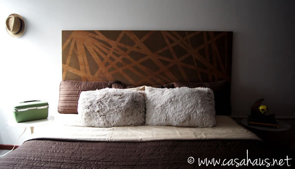 La madera entintada adquiere un color más profundo, y en combinación con el cobre de Rustoleum, que tanto me gusta, el resultado es una cabecera muy moderna y bastante espectacular (por una fracción del precio que pagarías en las tiendas). Por supuesto, puedes usar la tinta y el color de spray que quieras, jugando con las combinaciones (yo le traigo ganas a una blanca).