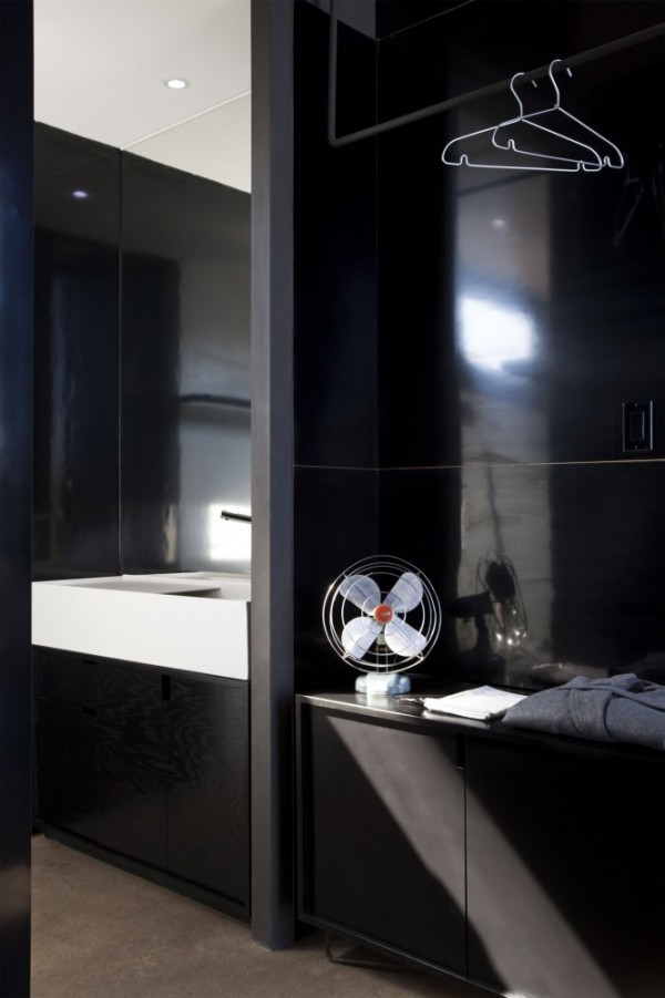 ¿Verdad que es increíble? Me fascina su estilo sobrio y minimalista, el uso de madera, acero y concreto pulido, así como los detalles industriales. Creo que es un estilo que bien podría servir de inspiración para llevarlo al hogar, ¿no te parece? E incluso podría inspirar dos que tres diy, como por ejemplo las divinas lámparas de tubería sobre la cama 🙂 Por cierto, muy curioso cómo el mismo espacio luce tan diferente, ya sea negro o blanco… ¿a ti cuál te gusta más?